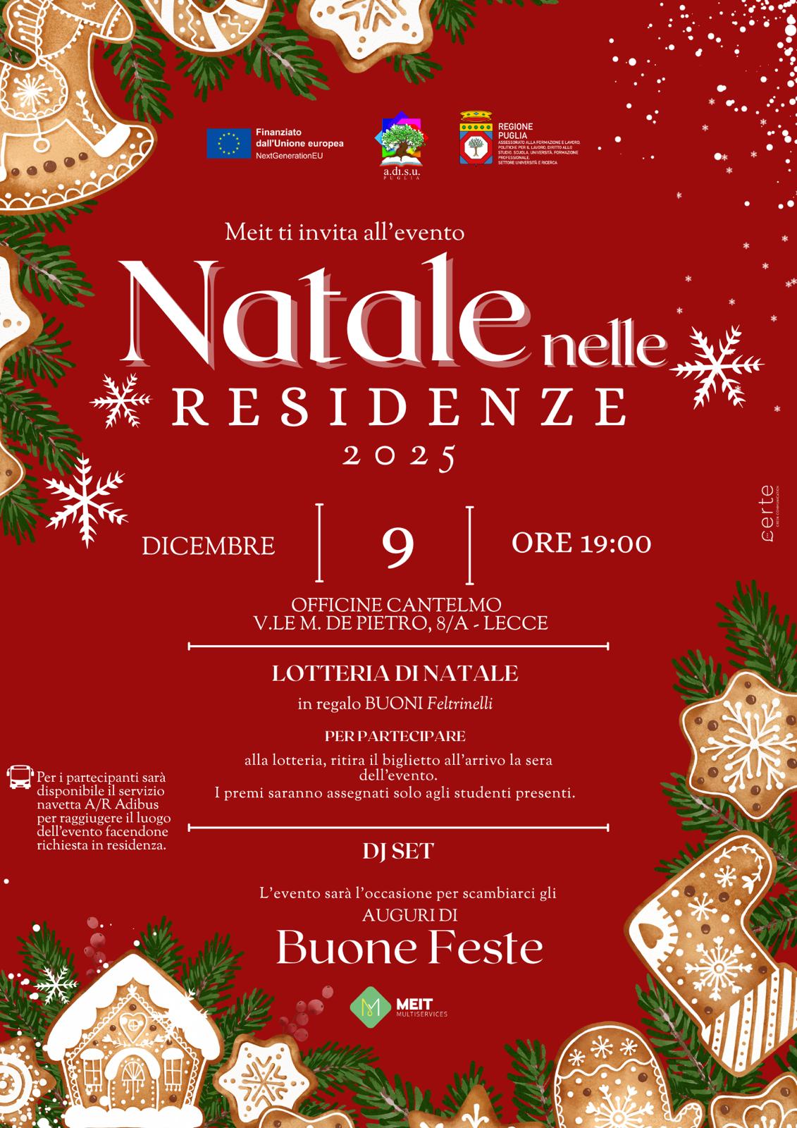 Il 9 dicembre alle ore 19.00 presso le “Officine Cantelmo”, MEIT multiservice in collaborazione con l’Adisu Puglia ha organizzato l’evento di Natale per i ragazzi delle nostre residenze.